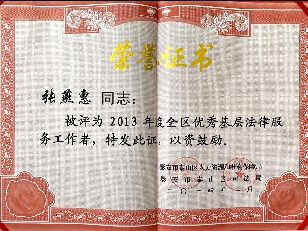 • 张燕惠被评为2013年度全区基层法律服务工作者