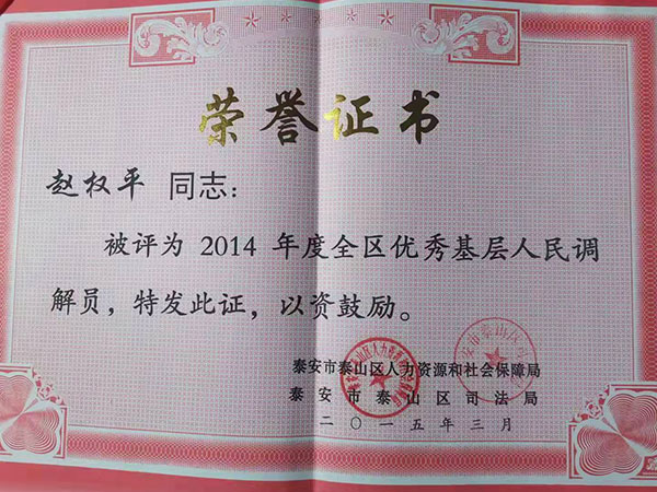 • 赵权平2014年度全区基层人民调解员